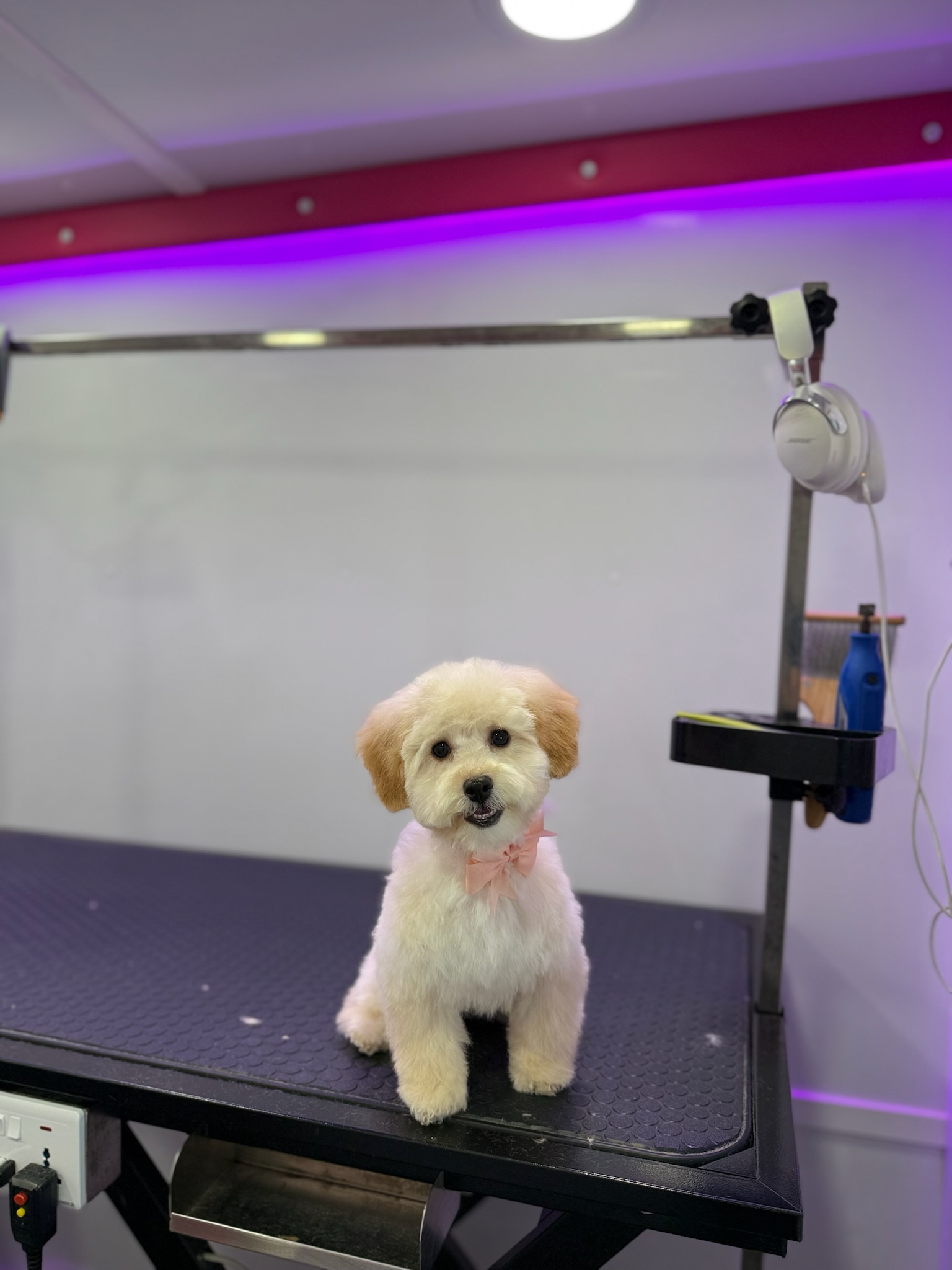 Our mobile dog grooming service includes a luxury bath, shampoo and conditioning, blow-dry, brushing, nail trimming, ear cleaning, and gland care, with haircuts included for full grooming appointments. Everything is done inside our clean, calm, fully equipped van — right at your door.